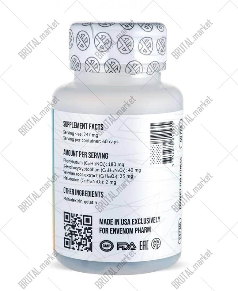 В состав включены компоненты, которые помогают наладить сон: фенибут, 5-Гидрокситриптофан, экстракт корня валерианы и мелатонин. Синергичное действие активных веществ комплекса Слипин способствует снятию тревожности, улучшению качества и продолжительности сна при бессоннице и чрезмерных нагрузках, причиной которой иногда становятся тяжелые тренировки.
