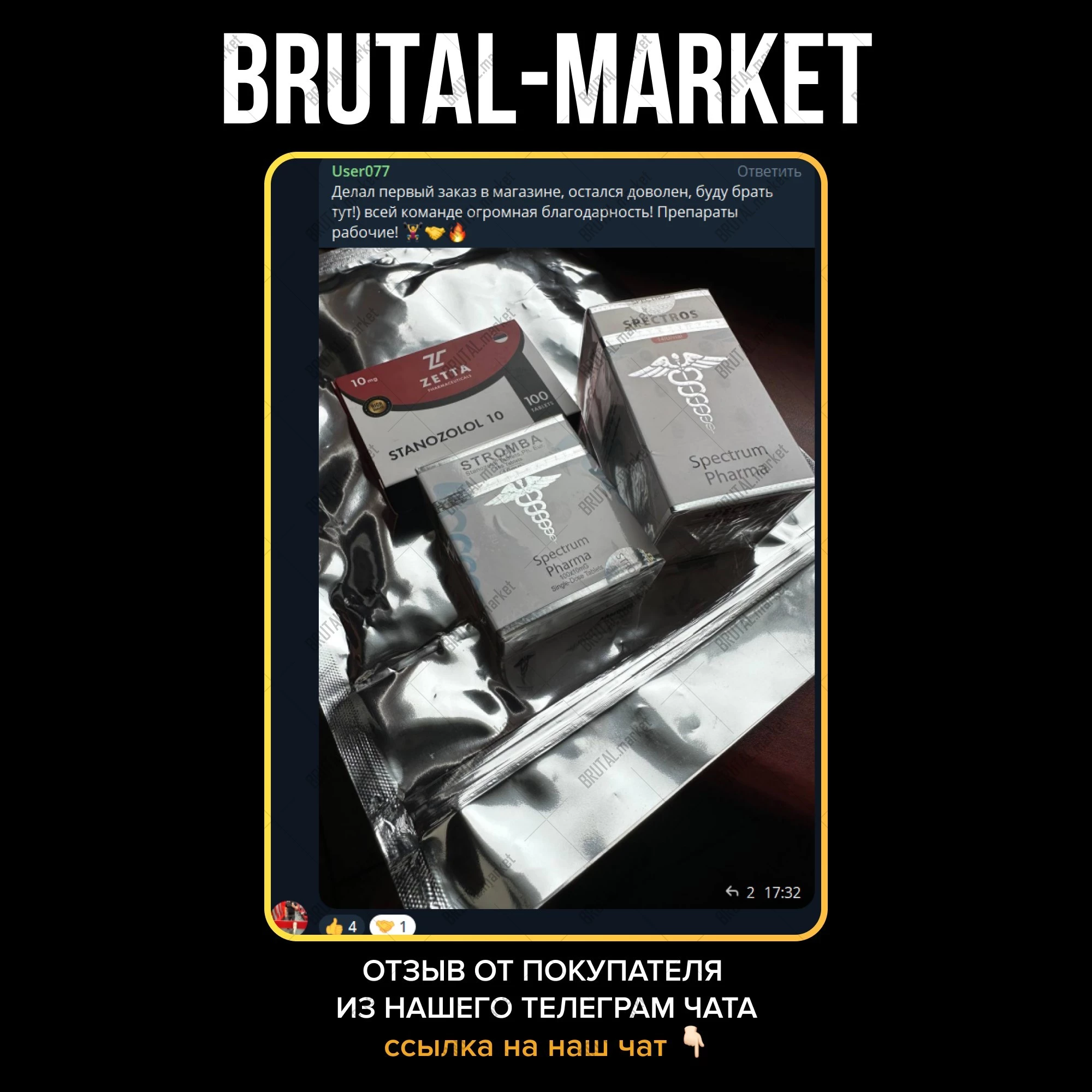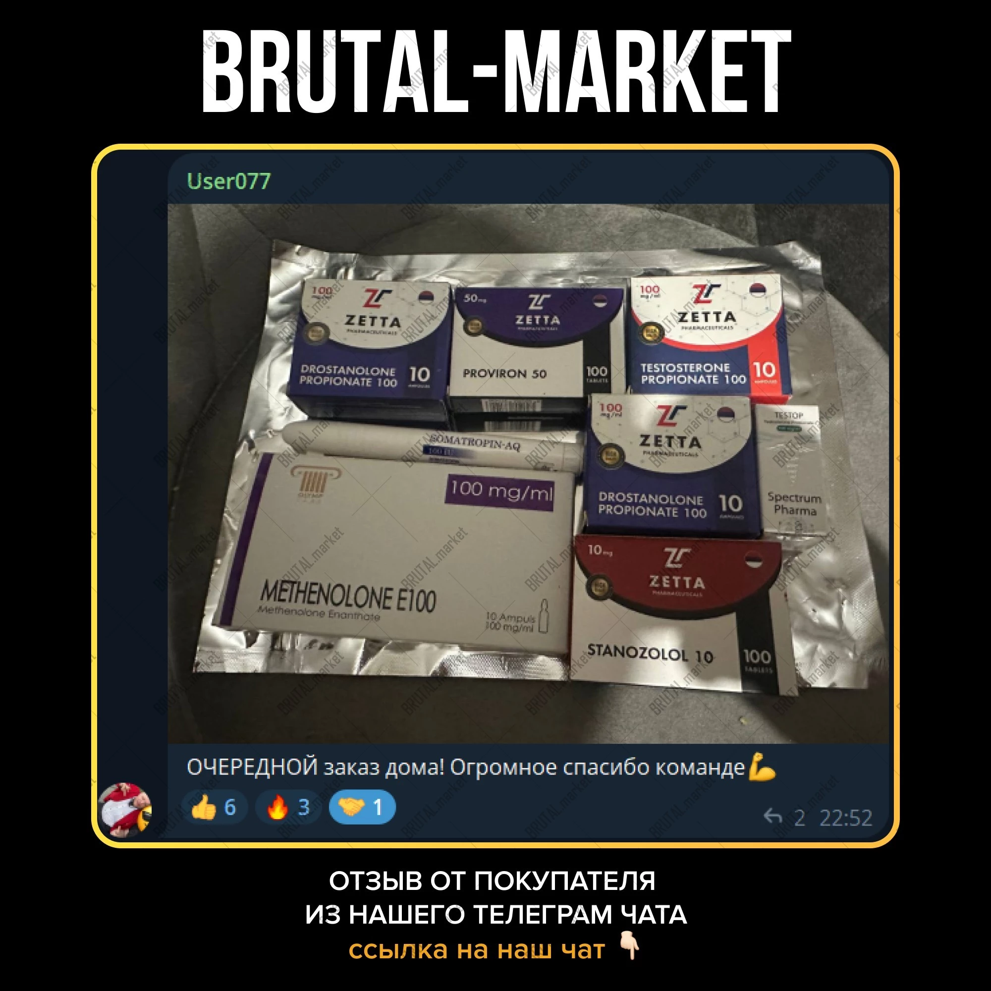 Магазин BrutalMarket хочет предложить Вашему вниманию очень широкий спектр ассортимента качественной, безопасной и недорогой фармакологии, которая доступна в наши дни. Для этого не нужно ходить и искать рецепт на аптечные стероидные препараты. Вы можете произвести покупку интересующего Вас товара прямо у нас на сайте. Мы доставляем качественную, уникальную, а главное – недорогую, фармакологию по всему Миру и всей России.