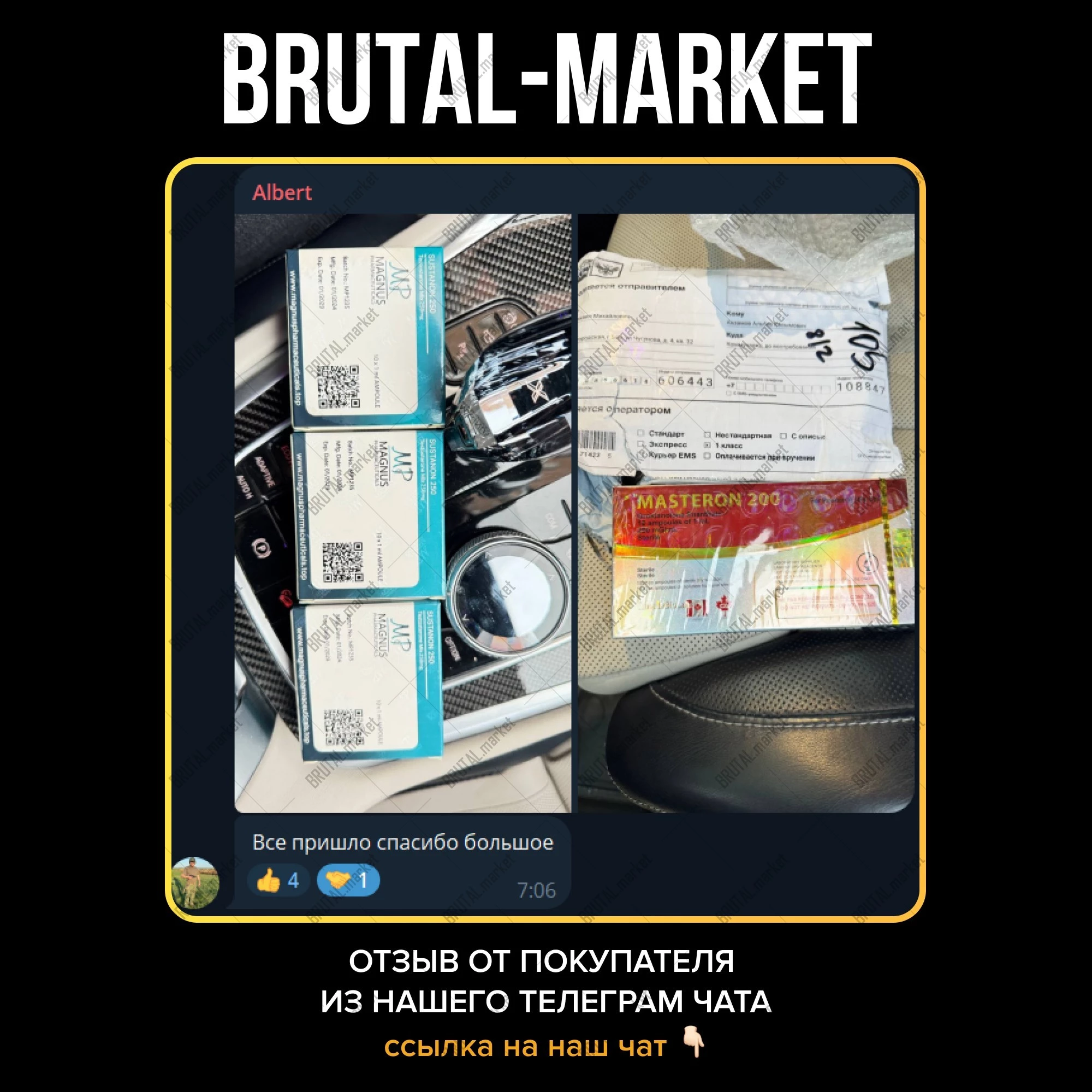 Но команда Brutal Market не требует специальный рецепт при покупке препарата и любой желающий имеет возможность приобрести Сустанон по доступной цене, с доставкой по всей России и всему Миру.
