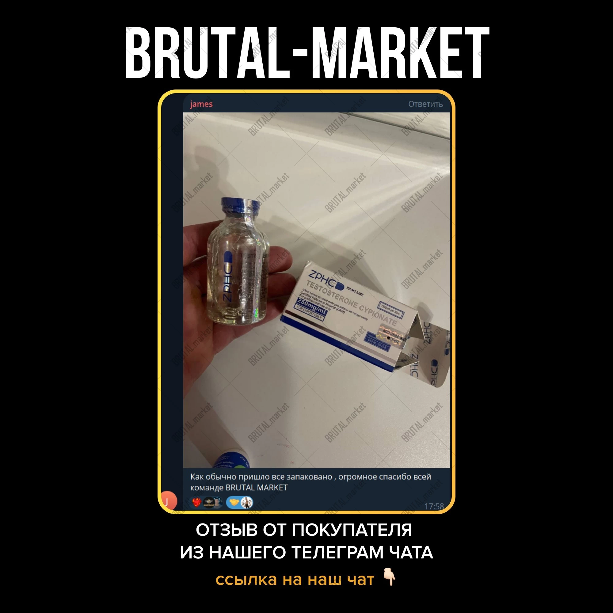 Тестостерон Тестостерон ципионат от ZPHC купить который можно на сайте brutal-market, который имеет самые приемлемые цены. Заказать тестостерон довольно просто, достаточно нажать на кнопку «купить» и оформит заказ на сайте.
