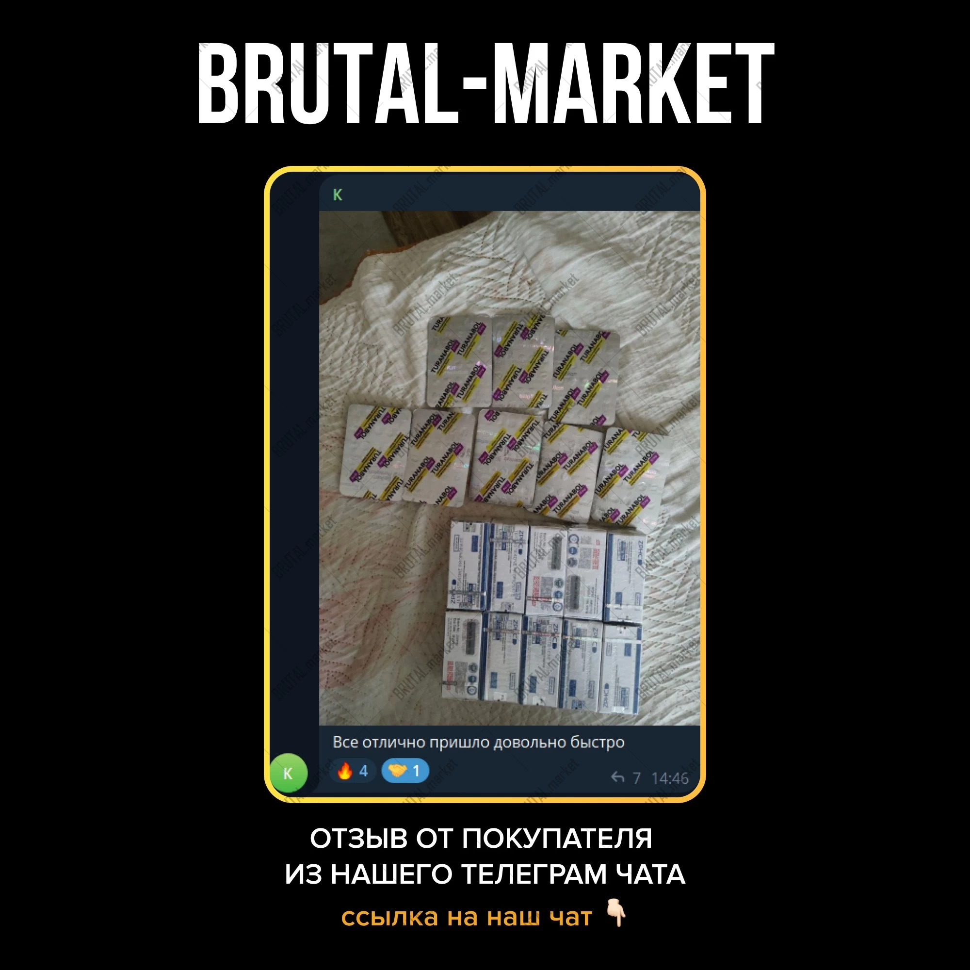 Ярко выраженный рост сухой массы, без задержки жидкости, с минимальным феноменом отката - купите на официальном интернет-магазине Brutal Market. Подробности по поводу доставки и оплаты товара в Москве, по РФ и Миру уточняйте в соответствующих разделах или в телеграмме Админа - @brutalmarket.