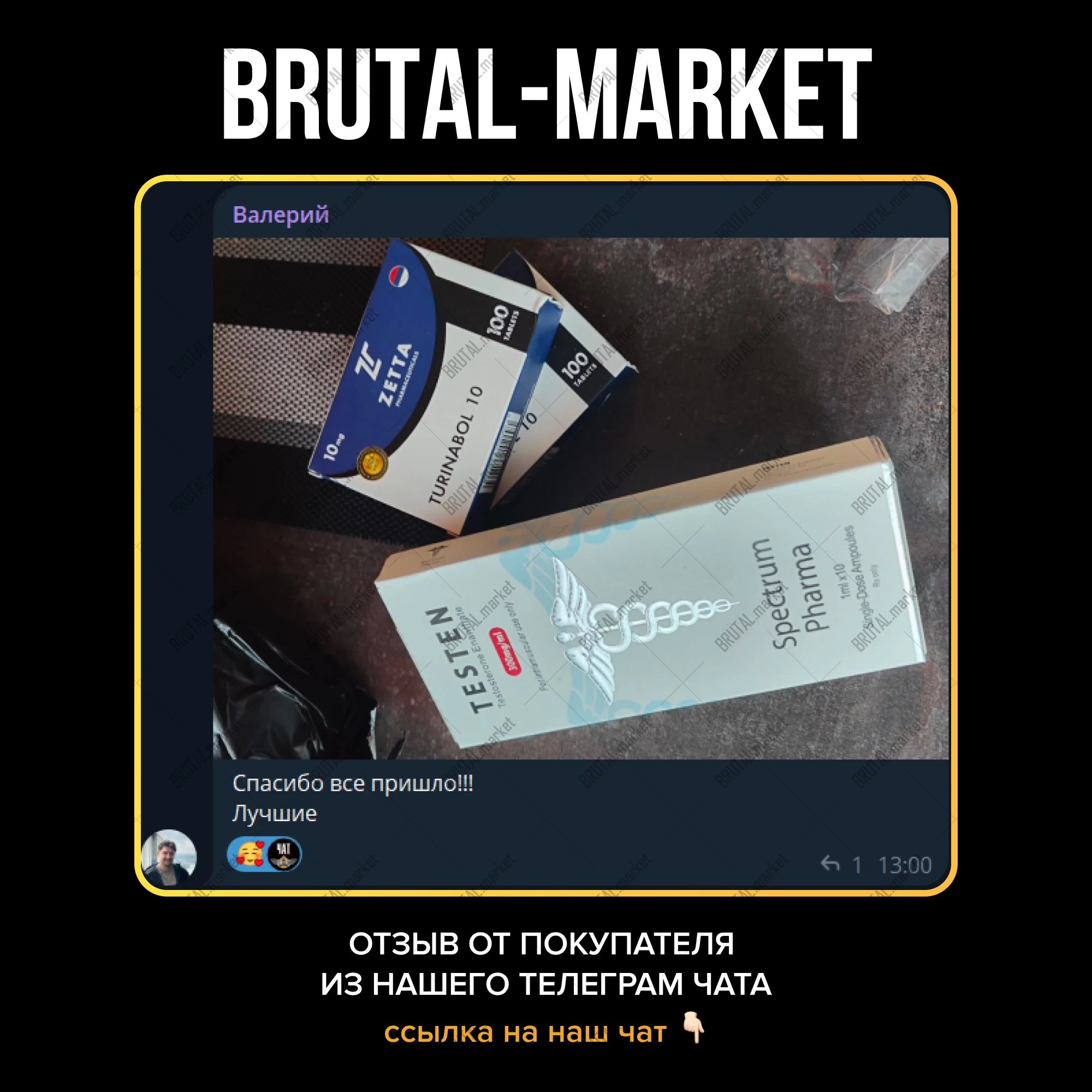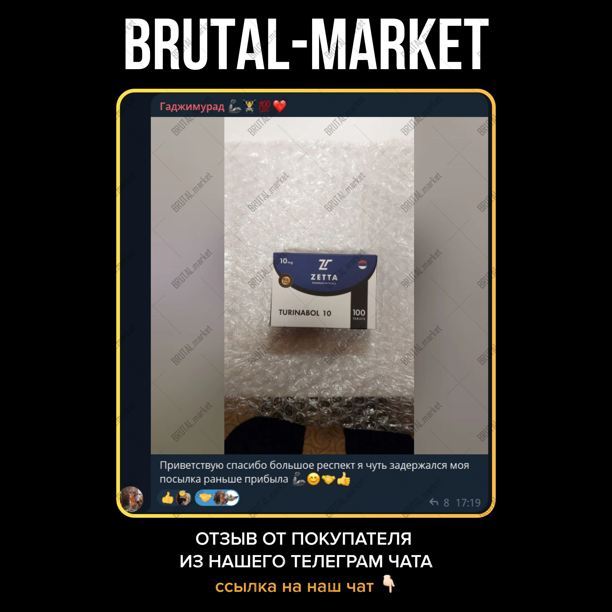 Ярко выраженный рост сухой массы, без задержки жидкости, с минимальным феноменом отката - купите на официальном интернет-магазине Brutal Market. Подробности по поводу доставки и оплаты товара в Москве, по РФ и Миру уточняйте в соответствующих разделах или в телеграмме Админа - @brutalmarket.