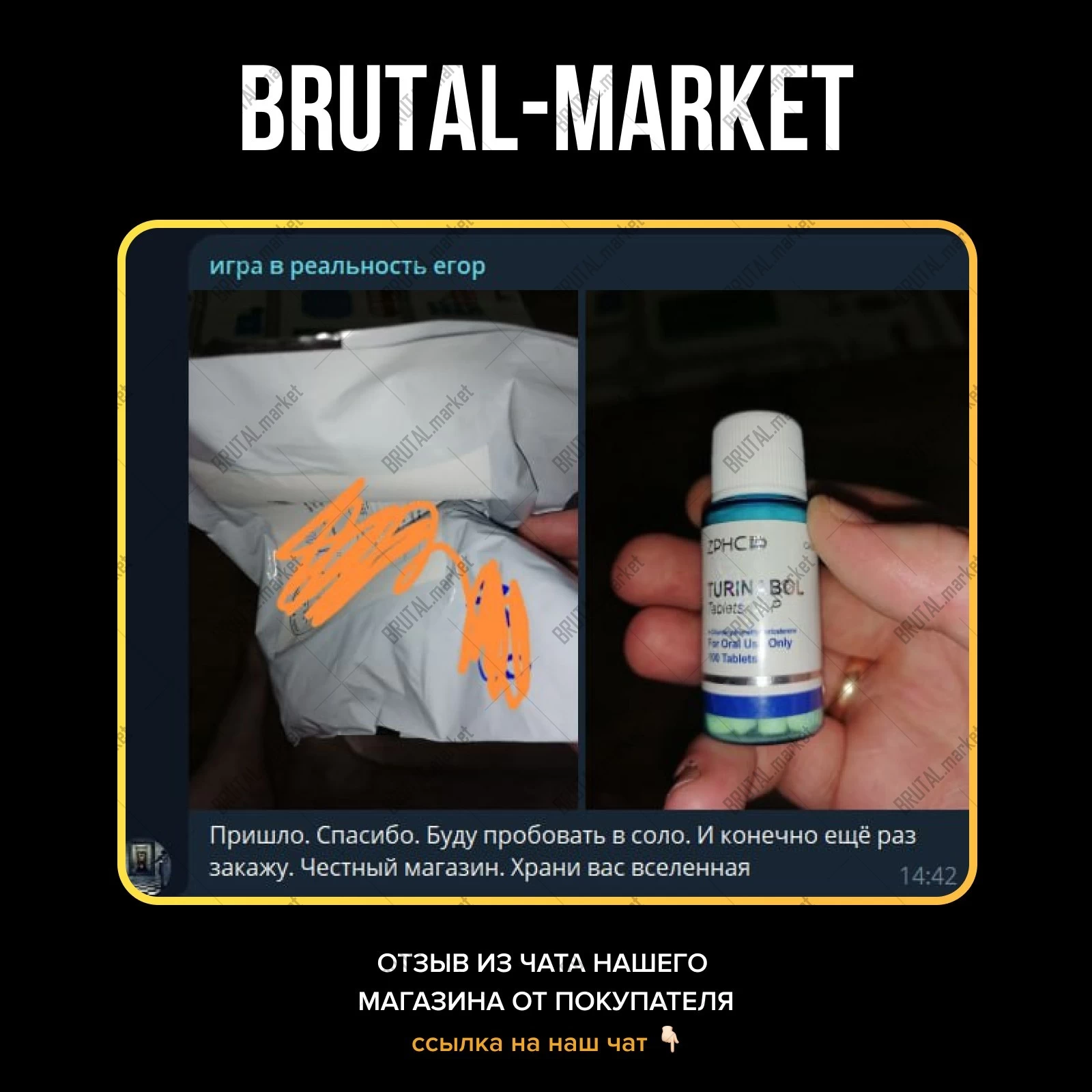 Ярко выраженный рост сухой массы, без задержки жидкости, с минимальным феноменом отката - купите на официальном интернет-магазине Brutal Market. Подробности по поводу доставки и оплаты товара в Москве, по РФ и Миру уточняйте в соответствующих разделах или в телеграмме Админа - @brutalmarket.